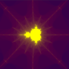 左の図形はマンデルブロ集合の全体図をグレースケールで表示したものです。